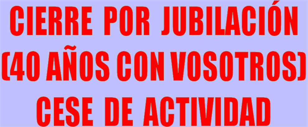 CIERRE POR JUBILACIÓN (40 AÑOS CON VOSOTROS) Y CESE DE ACTIVIDAD